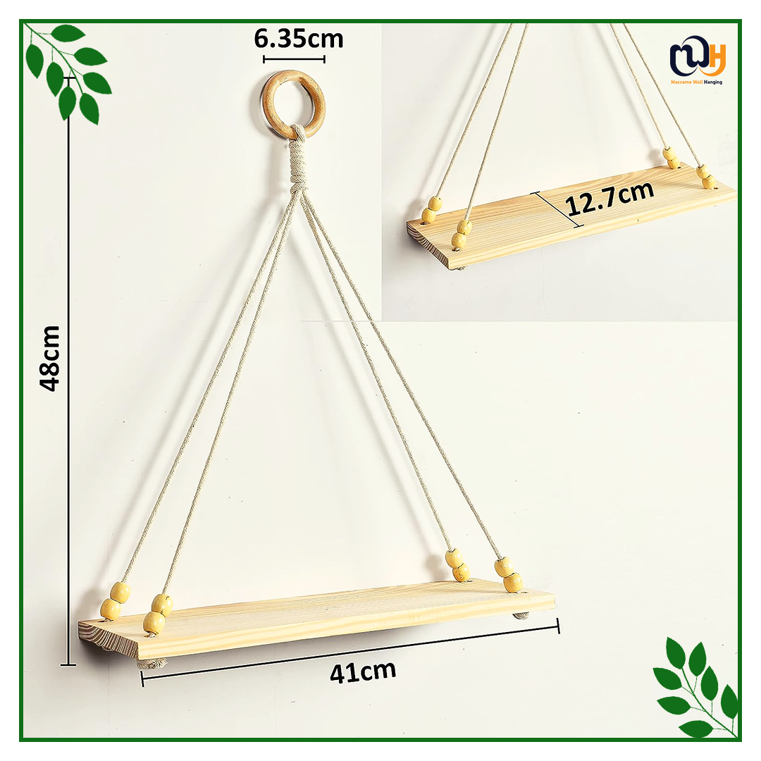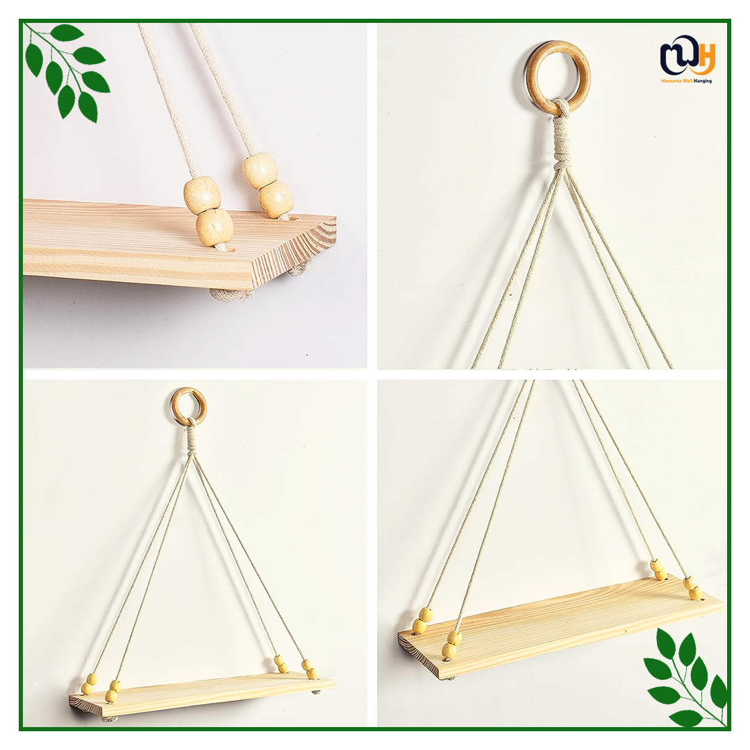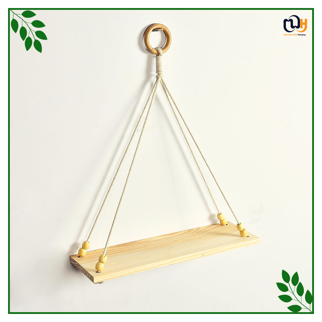Handmade Boho Style Shelf Wood Floating Shelves with Wooden Beads